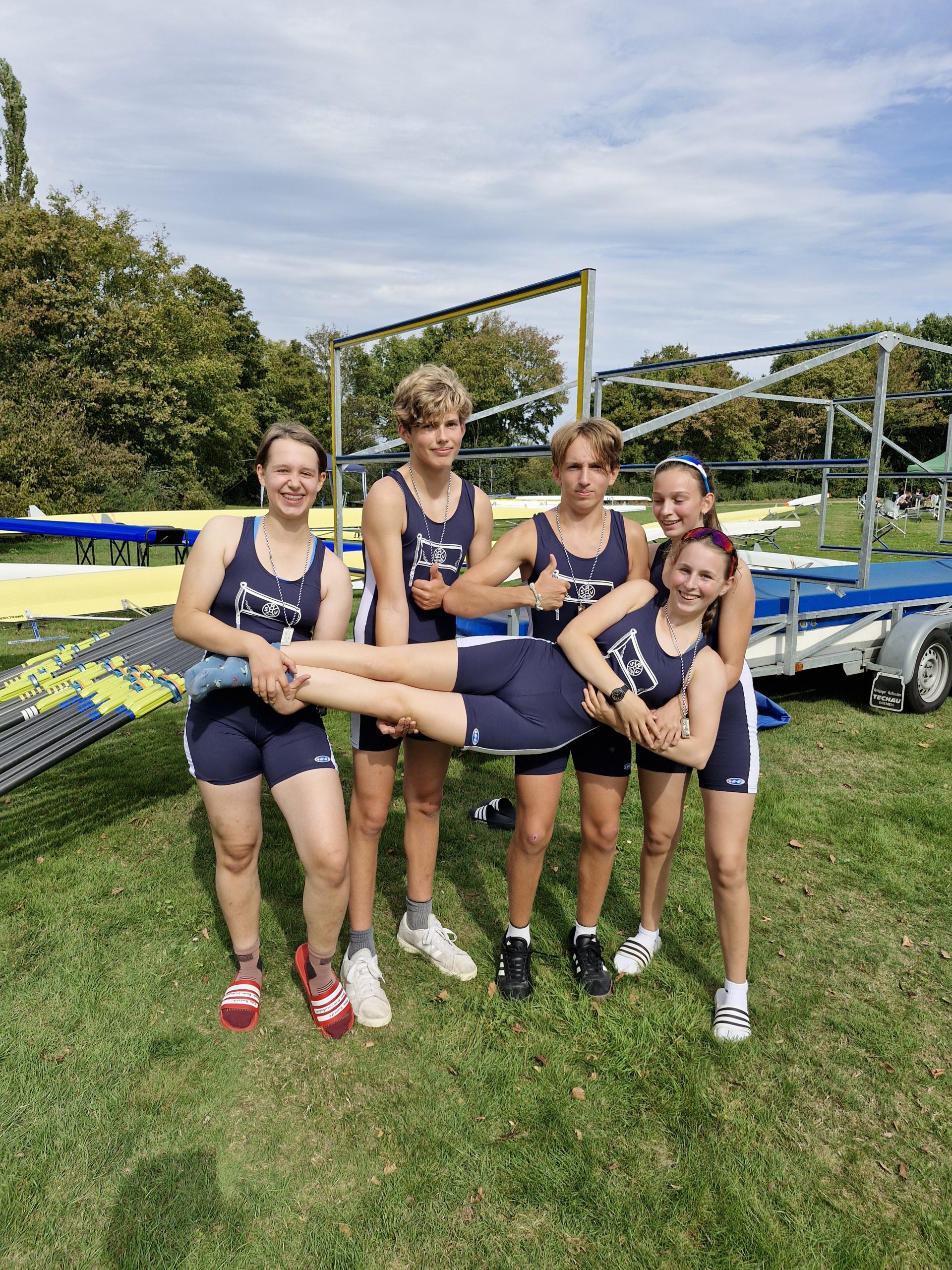 Noch deutlicher fiel der Erfolg im Mixed Doppelvierer 13/14 Jahre (LK 2) aus: Samuel Teschner, Tristan Sämisch und Steuerfrau Mia Wagner ruderten gemeinsam mit Anike Hauswald und Filippa Köhler (Bonner RG) souverän zum Sieg.